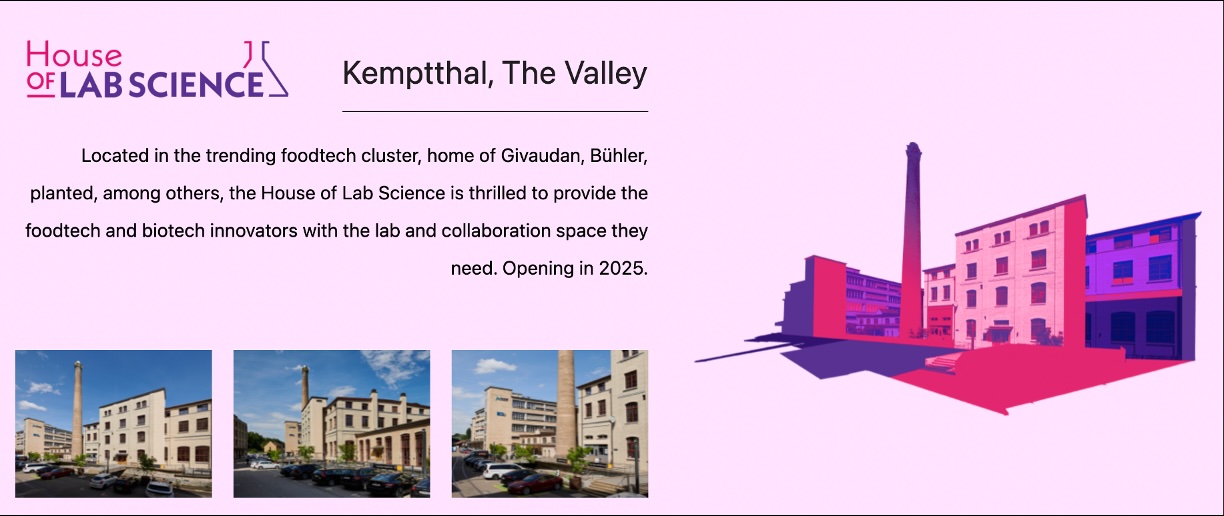 We will be hosted by the new House of Lab Science in Kemptthal, which offers ready to use lab space to companies that need room for innovation.